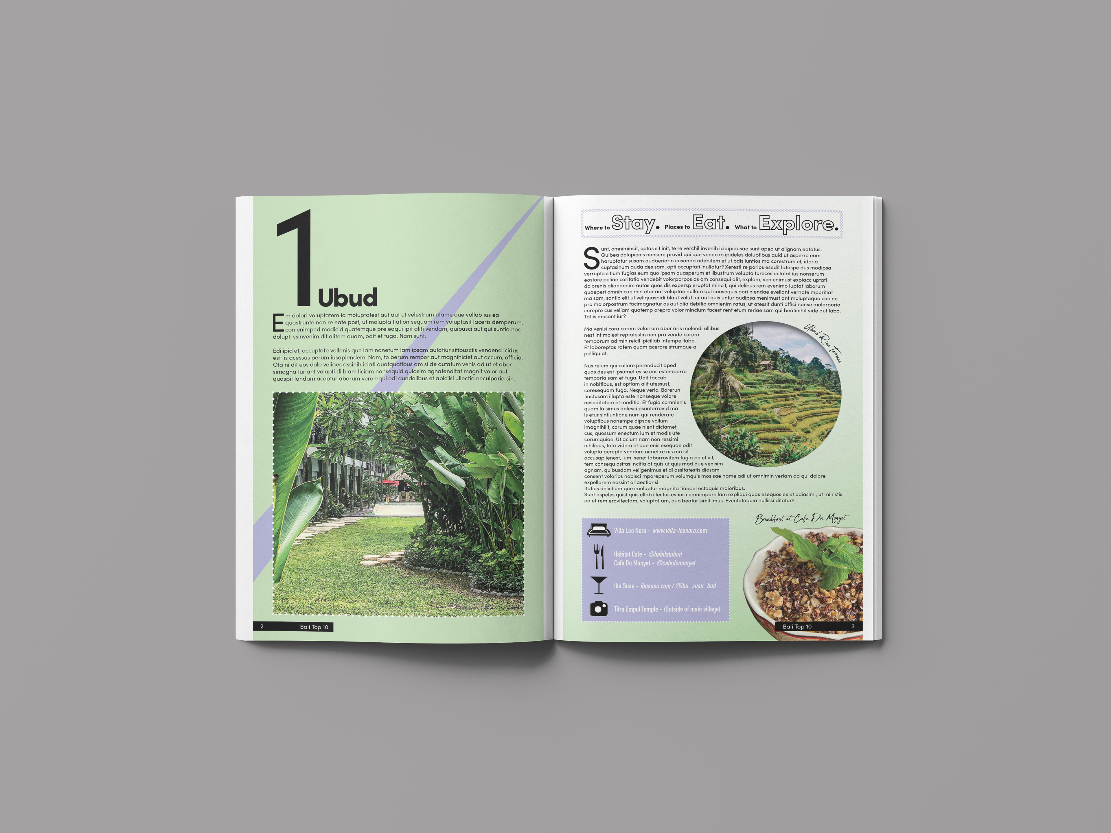 Samples from two booklets designed to provide an introduction to the sport of Boxing and a travel guide for Indonesia.